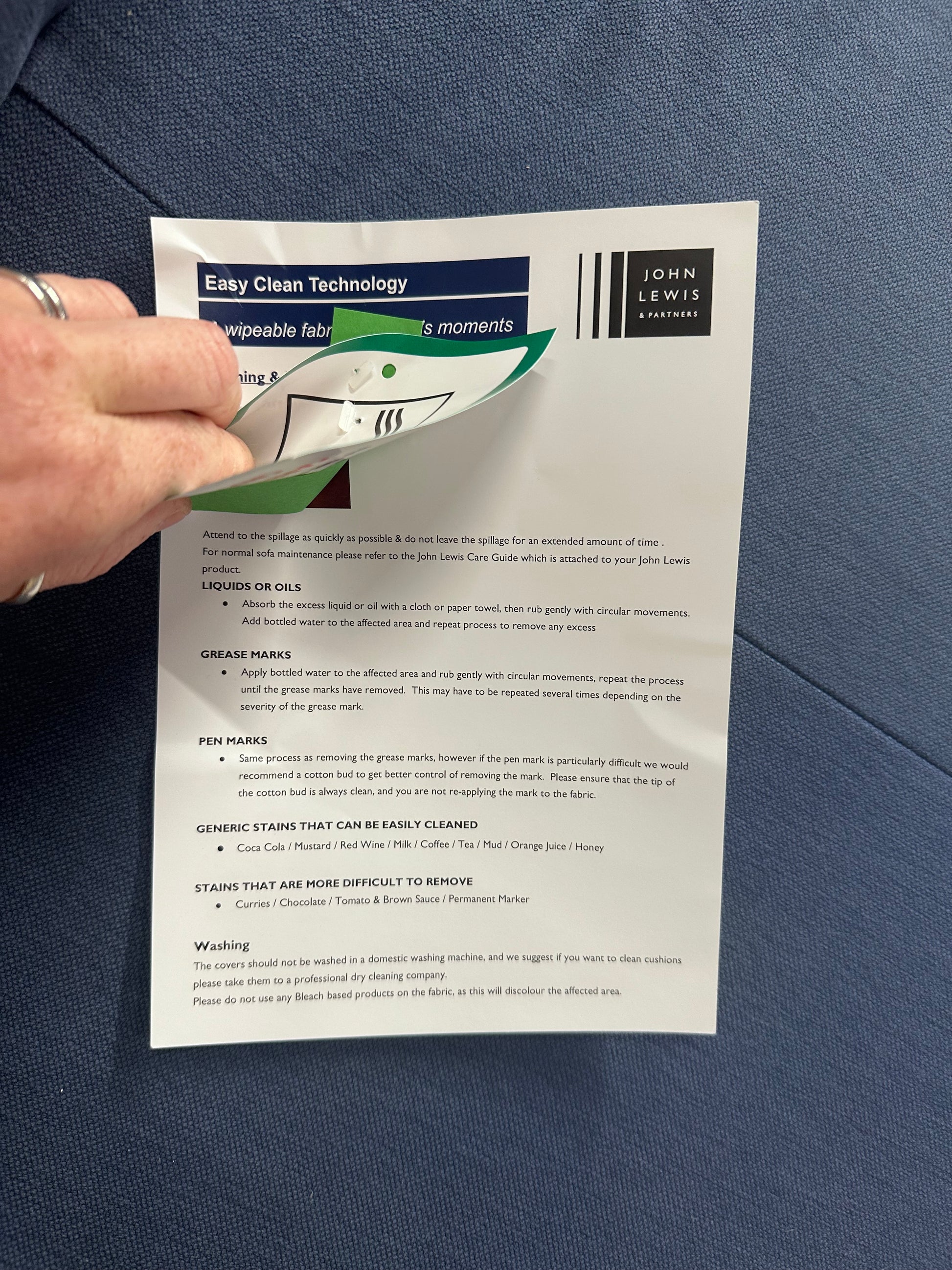 Aquaclean treatment covers every fibre of this fabric with an invisible coating that doesn’t need to be retreated or recoated. The majority of household stains can be cleaned with just bottled water, making this fabric a good choice for busy homes that are prone to surprise spills. It also has Safe Front®