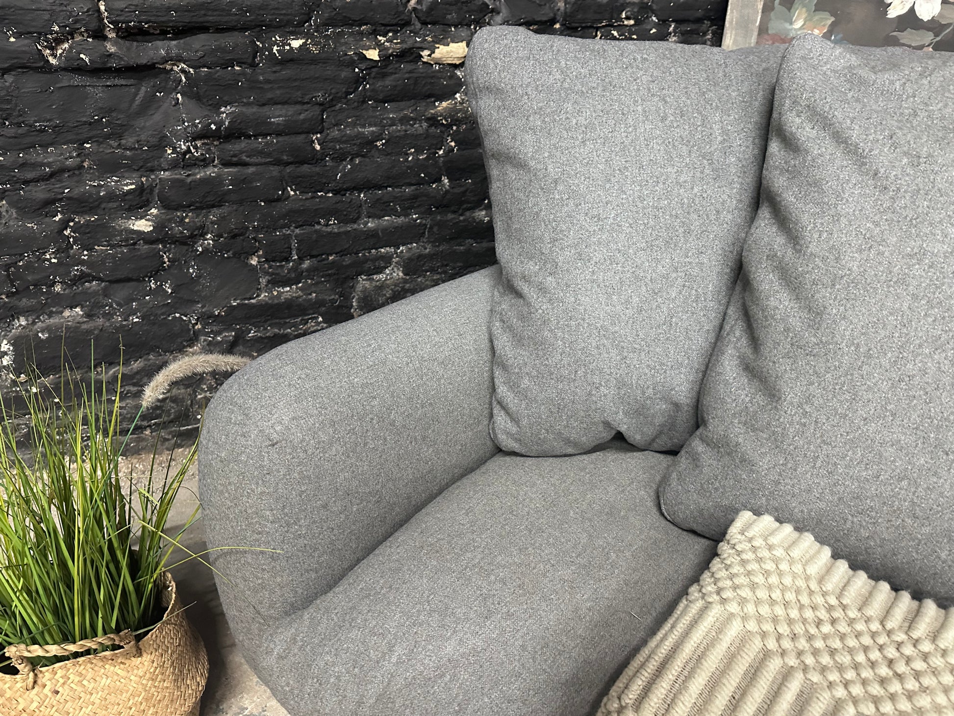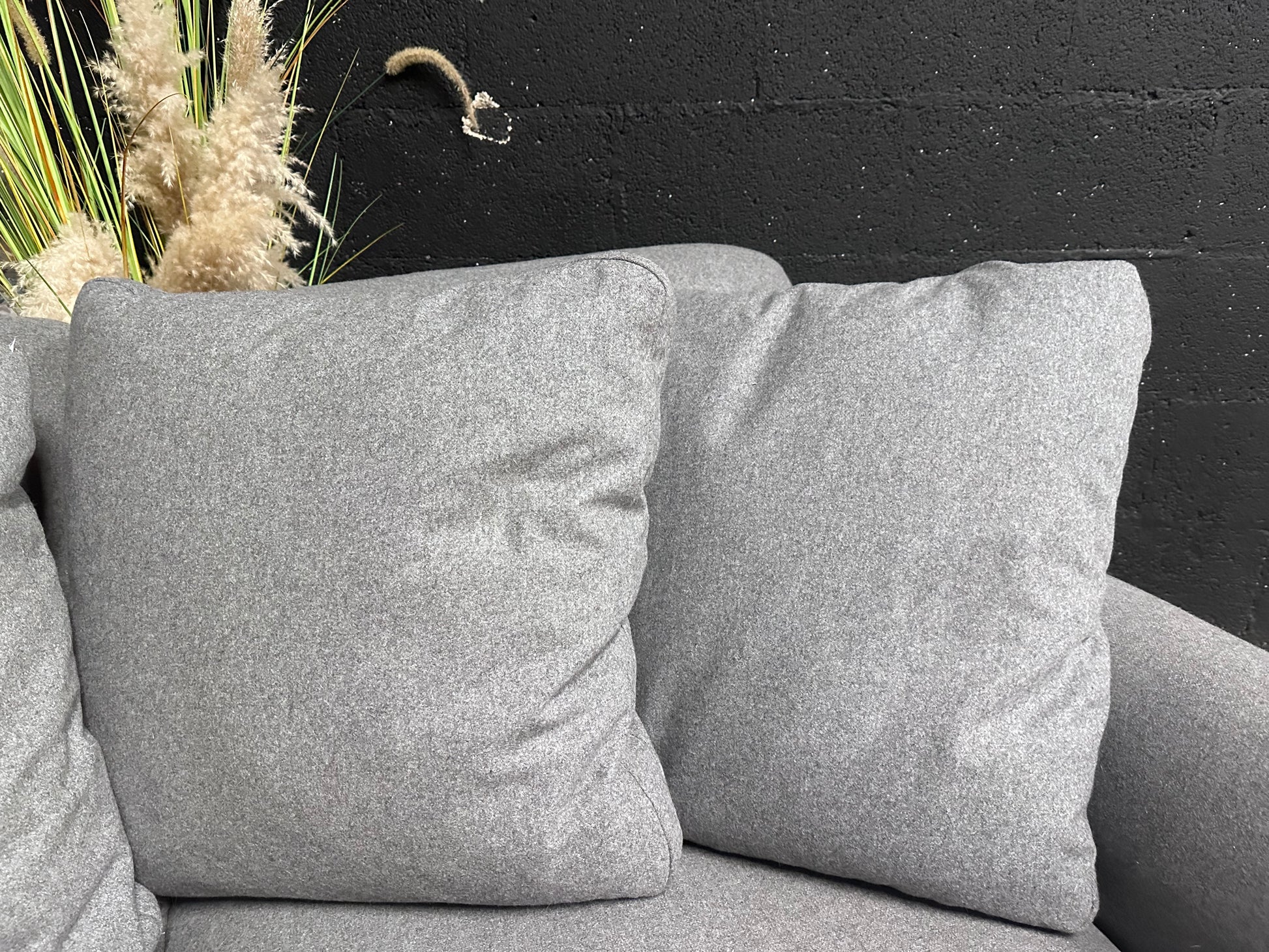 Seat cushion: Foam core with feather wrap. Seat cushions slowly bounce after every sit to help reduce plumping.