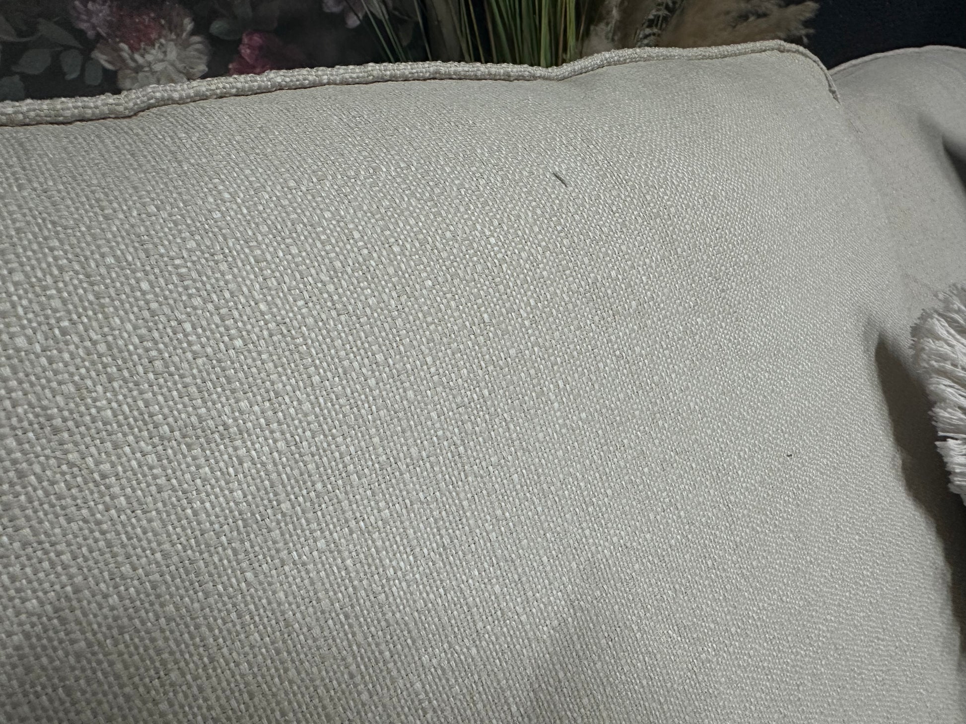Wrapped in neutral cream woven material with dark wood feet the M&S Lincoln has an high back and foam and fibre seat cushions for a medium comfort sit. It will fit in amazingly with any colour pallets being neutral and with All the cushion covers coming off to wash and hang out to dry on a 30 degree wash to keep it looking fabulous for years to come.